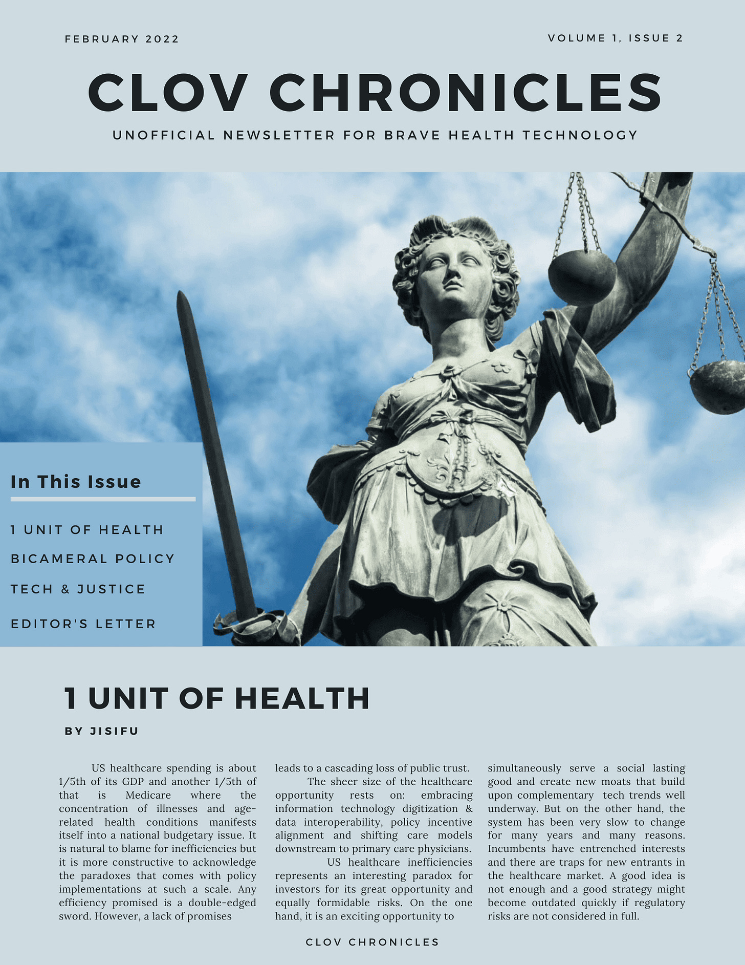 CLOV Chronicles Volume 1, Issue 21 Unit of Health, Bicameral Policy, Tech & Justice, Editor's LetterMatt JiMar 01, 20222ShareDownload the PDF here.